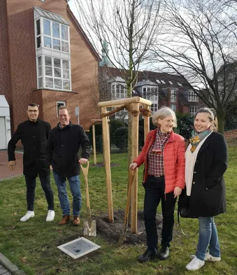 Eine besondere Aktion für den Klimaschutz: Musikerinnen und Musiker der Neuen Philharmonie Westfalen pflanzten mit Unterstützung der Stadt Recklinghausen drei wundervolle Orchesterbäume. Bürgermeister Christoph Tesche und Generalmusikdirektor Rasmus Baumann gaben den symbolischen Startschuss für diese umweltfreundliche Initiative, indem sie am Donnerstag, dem 1. Februar, eine Bodenplatte mit einem passenden Hinweisschild einsetzten. Mitinitiiert und mitorganisiert wurde die Aktion von NPW-Solo-Klarinettistin Kerstin Grötsch und der orchestereigenen "Orchester des Wandels"-Gruppe.
