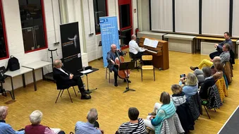 Was in der Saison 2021/22 mit zwei Abenden im Depot Recklinghausen sowie auf Haus Opherdicke im Kreis Unna erfolgreich gestartet war, findet nun seine Fortsetzung: Das exklusive Gesprächsformat „Meet & Greet mit …“ für Mitglieder des Vereins der Freunde und Förderer der NPW wurde Mitte September mit Begegnungen mit NPW-Solocellist Walter Gödde sowie mit Solopauker Nikolas Mareske fortgeführt.