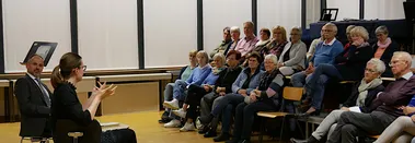Gestern Abend waren zum ersten Mal in dieser Saison etwa 40 Mitglieder des Vereins der Freunde und Förderer der Neuen Philharmonie Westfalen e.V. zu Gast bei uns im Depot um eines unser Orchestermitglieder besser kennenzulernen, deren Instrument hautnah zu erleben und Fragen zu stellen. Diesmal zu Gast war die Bratschistin Sophia Hilger. Statt Michael Makiolla führte die Moderation diesmal als Vertretung Mark Mefsut an.