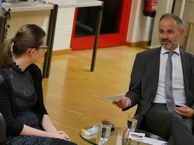 Doch nicht nur musikalisch kam die Vorspielerin der Bratschengruppe gut an. Mit viel Freude und Witz berichtete sie über ihre Ausbildung in Hannover und Frankfurt, ihre musikalische Familie und wie anstrengend Probespiele sein können. „Ich war jung, ich brauchte das Geld“, sagte Hilger lachend, als sie erzählt, dass sie für ihren Bachelor-Abschluss, den sie als Beste der Streichergruppe abgeschlossen hatte, ein Preisgeld gewann.